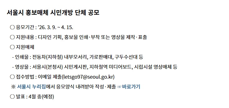 바로 서울시에서 진행하는 홍보매체 무료 개방 지원 사업입니다.