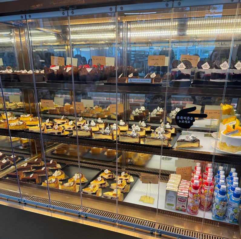 빵순이, 빵돌이 여러분 주목하세요! 쇼케이스를 가득 채운 케이크와 타르트 비주얼 좀 보세요.
