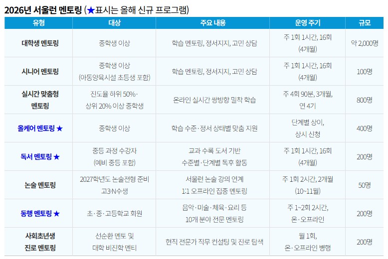 서울런 멘토링 3종 신설 (2026년 핵심 변화) 주목!!!